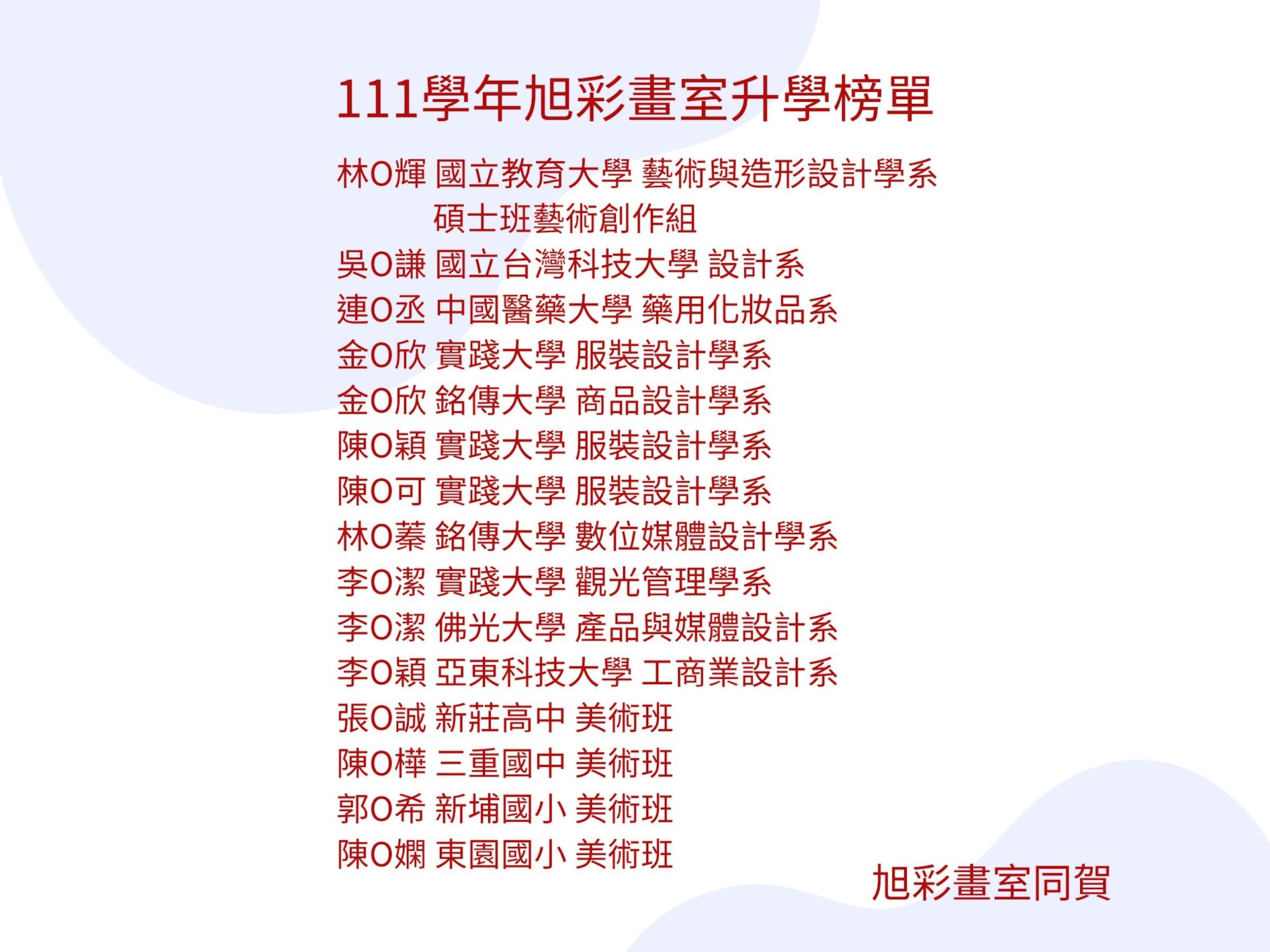 我們這次有三位努力不懈的學生,交出了屬於自己的漂亮答卷,也為畫室留下動人的足跡